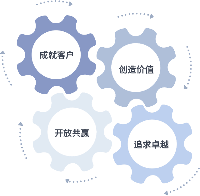 成就客户是一切决策的出发点,,,,创造价值是衡量所有工作的标准,,,追求卓越是c7c7娱乐做事做人的态度,,,,开放共赢是c7c7娱乐的格局也是最终的结果。。。。价值观的齿轮环环相扣,,推动着组织里的每个人不断向前。。